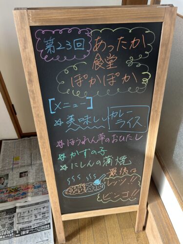 本日は、美味しいカレーライスが主食でした!あと、ほうれん草のおひたし、数の子、ニシンの蒲焼を調理して頂きました。ボランティアの皆様ありがとうございました。