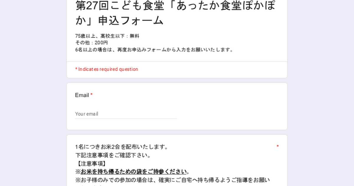 第28回こども食堂「あったか食堂ぽかぽか」申込フォーム